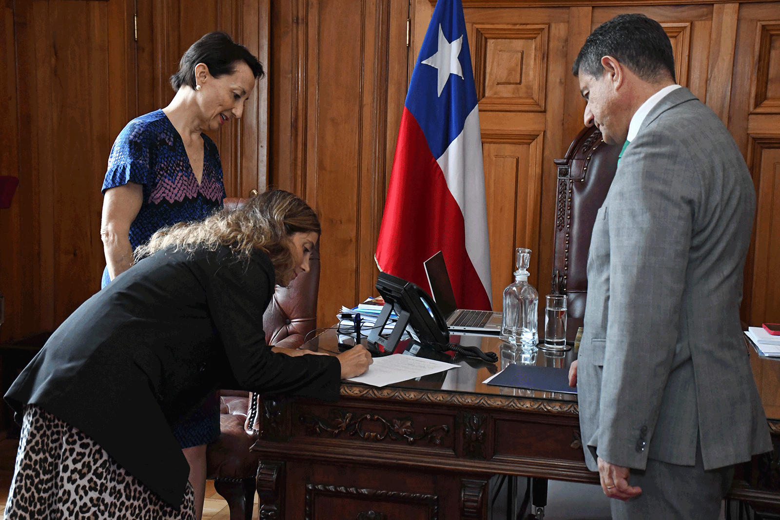 El juramento contó con la asistencia del juez titular del Tribunal de Contratación Pública señor Johans Saravia Carreño y las juezas titulares señoras Carolina Rivera Tobar y Jenny Turrys Nicolás, así como de familiares de la jueza señora Oyanguren.